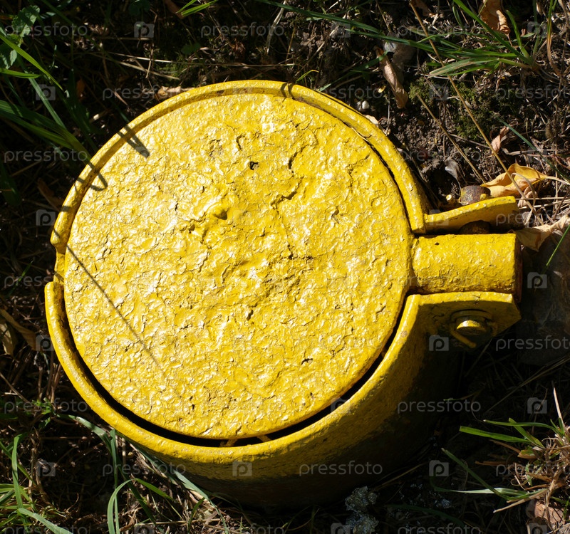 Желтый газовый люк в сухой солнечный летний день