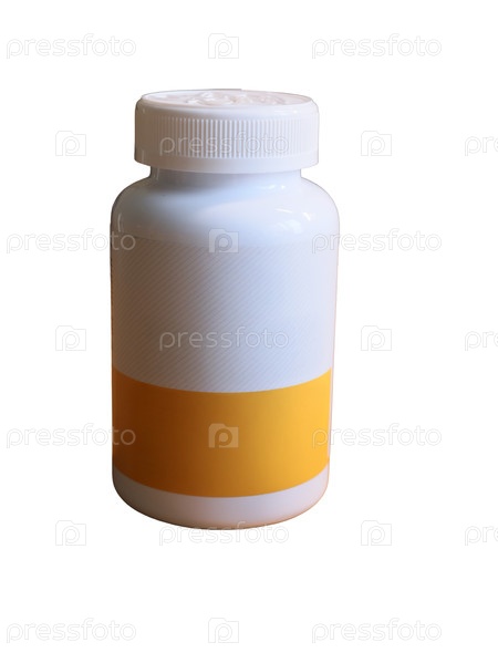 Бело-желтая бутылочка для таблеток, специально разработанная для различных продуктов для здоровья и добавок
