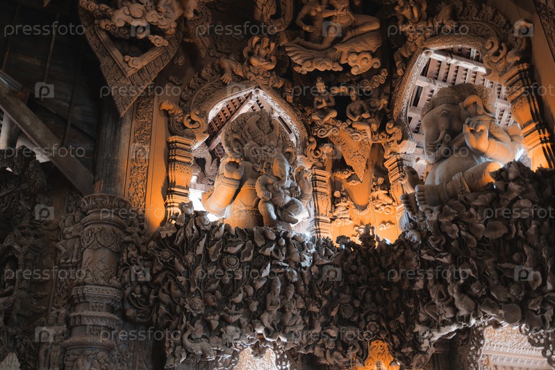Сложная и прекрасная резьба по дереву, отражающая суть сакральной архитектуры