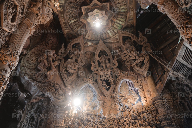 Полюбуйтесь изысканной и сложной резьбой поистине величественного потолка над вами