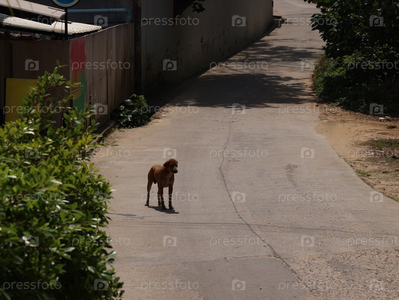 Одинокая собака бредет по тихой и спокойной тропинке среди прекрасного пейзажа