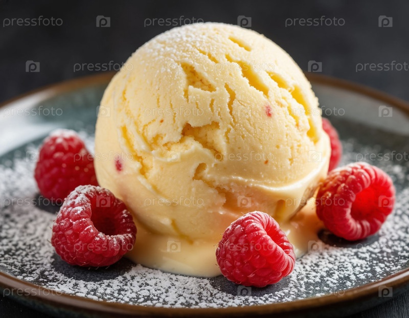 Мороженое-щербет на тарелке, созданное искусственным интеллектом