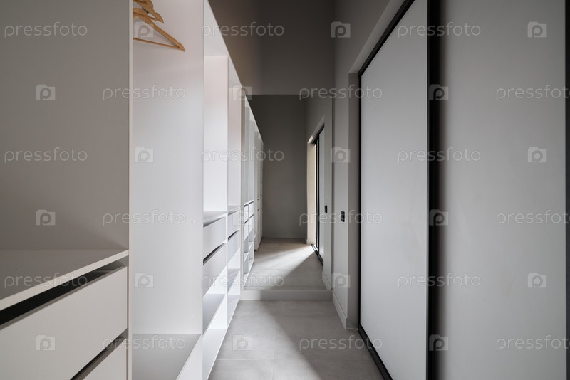 Современный минималистичный коридор со стильными решениями для хранения вещей для оптимальной организации