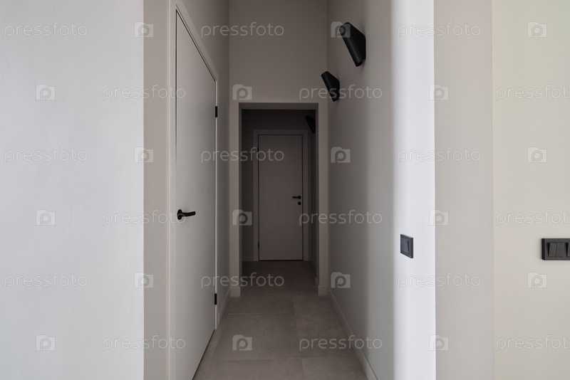 Минималистский коридор с современными светильниками, которые улучшают его эстетику и функциональность