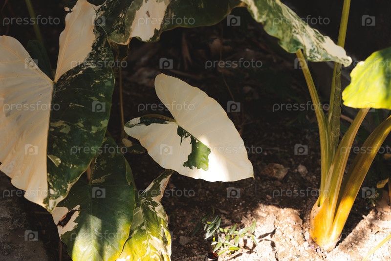 Замысловатое зеленое тропическое растение с уникальными и завораживающими узорами и рисунками листьев