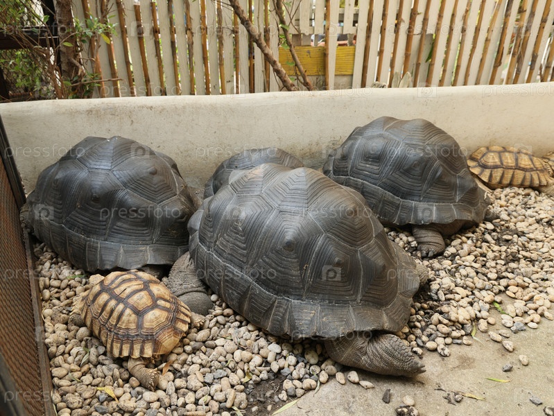 Группа черепах, удобно расположившихся вместе в красивом и спокойном саду