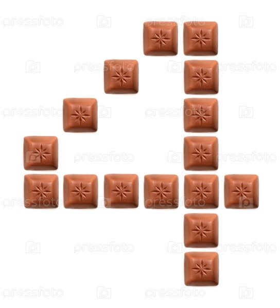 Цифры из кусочков шоколада, изолированные на белом фоне