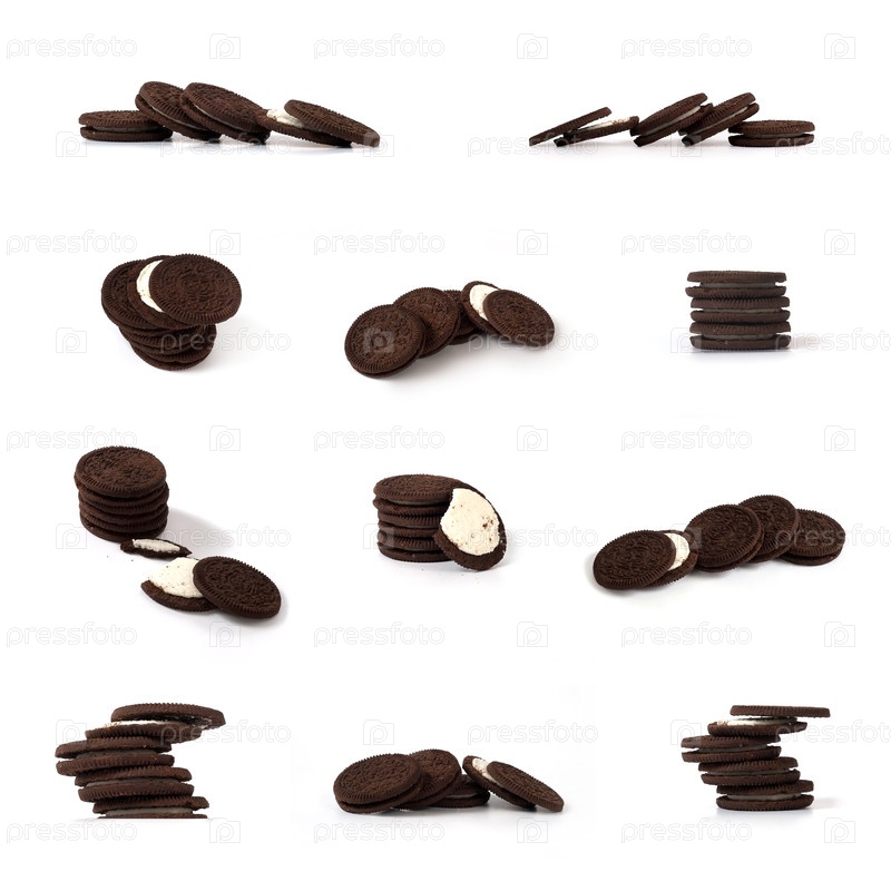 Шоколадное печенье с белой кремовой начинкой, изолированное на белом фоне