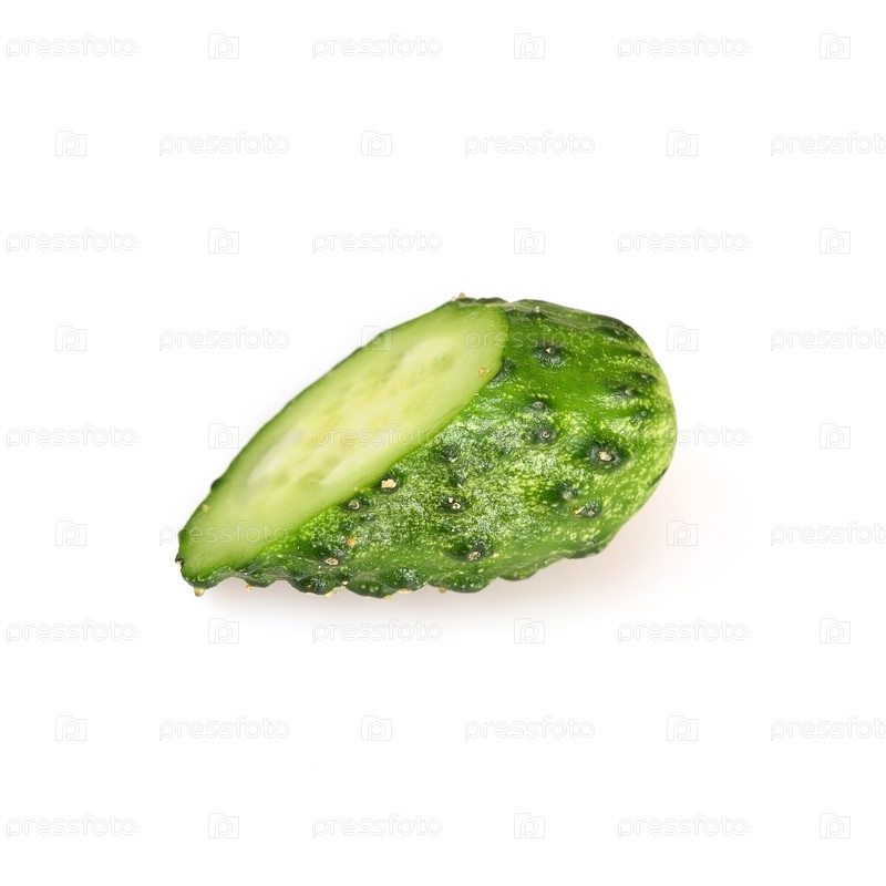 Свежий зеленый нарезанный огурец, изолированный на белом фоне