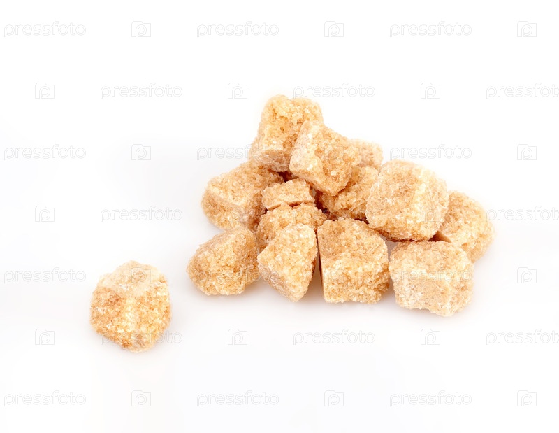 Куча кубиков тростникового сахара, изолированных на белом фоне