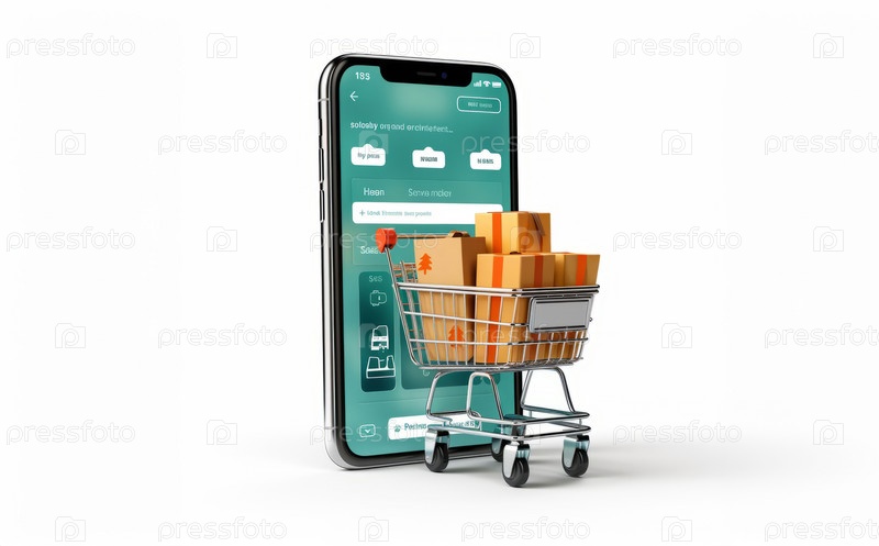 Крупный план телефона, на котором отображается концепция интернет-магазина.Сгенерированное изображение