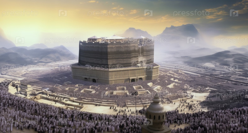 Мусульмане совершают хадж в одеждах ихрама во время священного паломничества.Сгенерированное изображение
