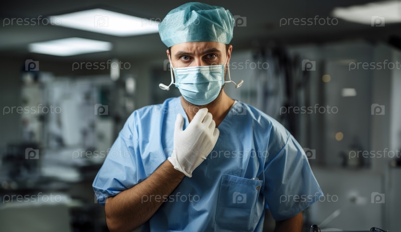В медицинском учреждении врач в маске олицетворяет профессионализм, воплощая суть здравоохранения в эпоху пандемии