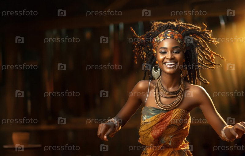 Афроамериканка с радостью танцует традиционный танец на оживленном фестивале, демонстрируя богатое и динамичное выражение своего наследия