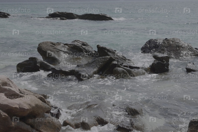 Величественно возвышаются безмятежные прибрежные скалы, окруженные нежными океанскими волнами, мягко плещущимися о них