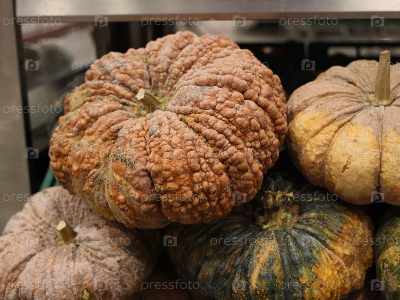 Разнообразная коллекция уникальных и красиво оформленных тыкв, представленных на рынке