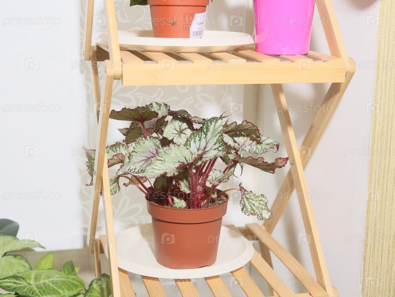 Красиво расставленные комнатные растения на деревянной полке — стильное дополнение к домашнему декору