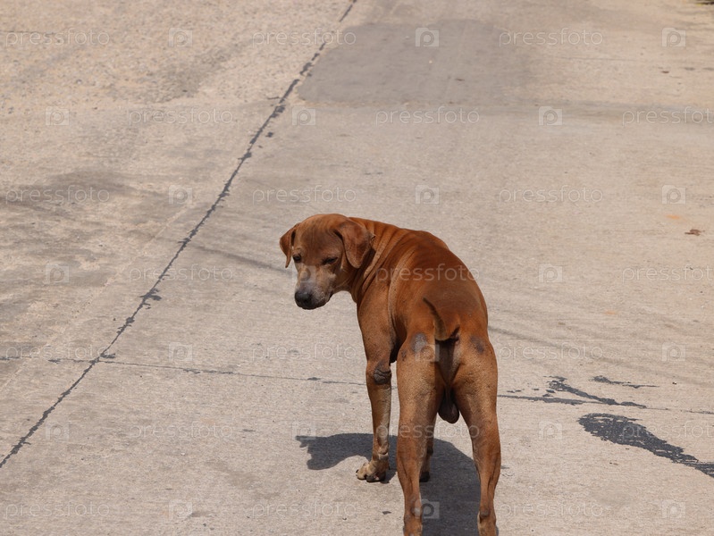 Одинокая собака неторопливо прогуливается по извилистой сельской дороге