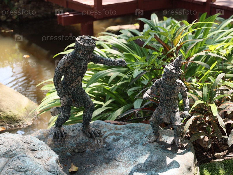 Захватывающая бронзовая скульптура с фигурами, красиво расположенными в спокойной обстановке сада