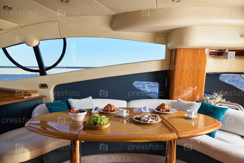 Откройте для себя роскошный интерьер яхты с живописными видами и изысканными угощениями на борту
