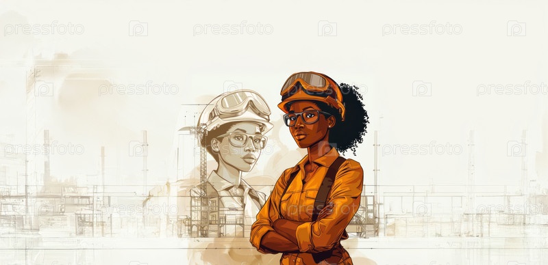 Уверенная в себе афроамериканка-инженер в рабочей униформе.Сгенерированное изображение