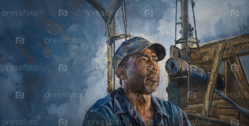 Портрет уставшего рабочего нефтеперерабатывающего завода в защитном снаряжении.Сгенерированное изображение
