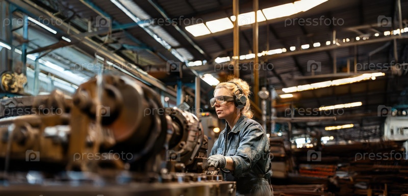 Старшая женщина-инженер-механик, работающая над деталями автомобиля в мастерской.Сгенерированное изображение