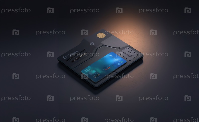 Крупный план кошелька с платежными картами.Сгенерированное изображение