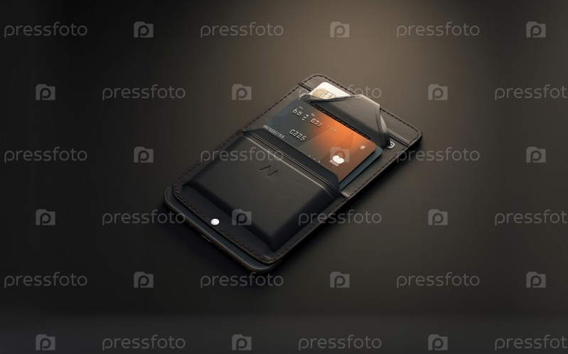 Крупный план кошелька с платежными картами.Сгенерированное изображение