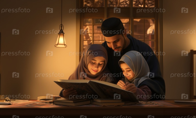 Крупный план мусульманского ребенка, читающего Священный Коран