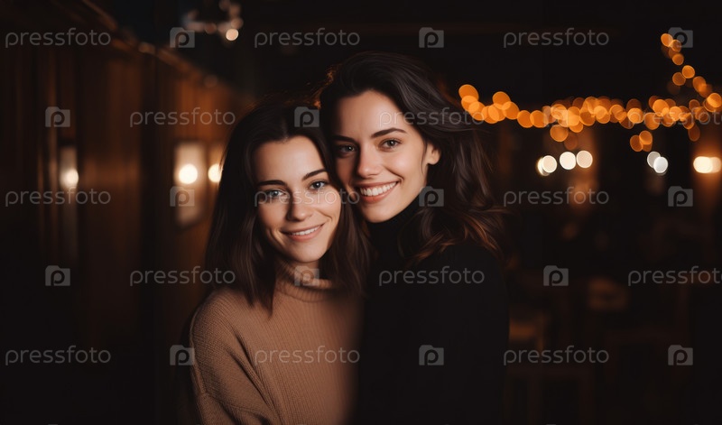В яркой атмосфере ночного клуба подруги стоят и позируют на камеру