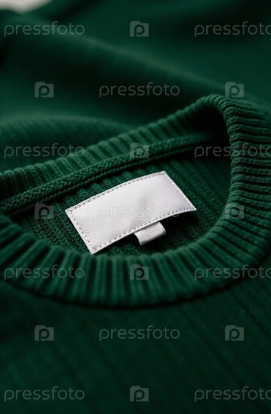 Бирка на шее для макета вязаного зеленого свитера. Генеративный искусственный интеллект