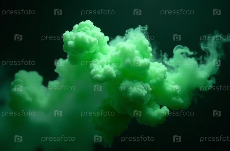Цветное зеленое облако дыма, абстракция Фоновая иллюстрация. Генеративный искусственный интеллект