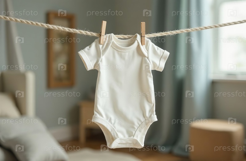 Детский белый боди для новорожденных с фоном детской комнаты. Генеративный искусственный интеллект