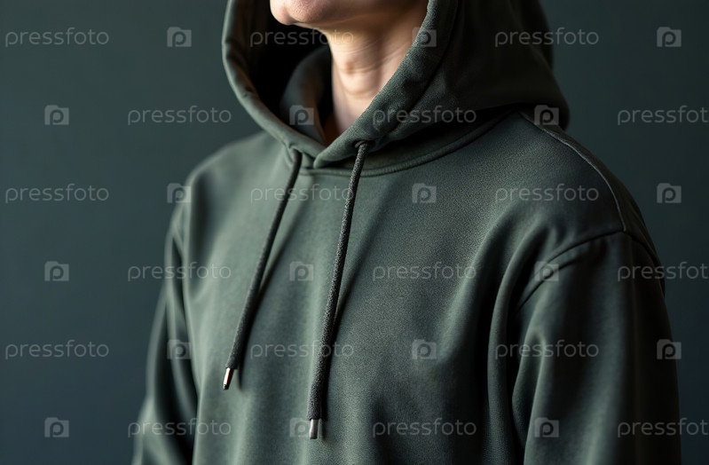 Черный мужской свитер с капюшоном Mockup на черном фоне Mockup. Генеративный искусственный интеллект