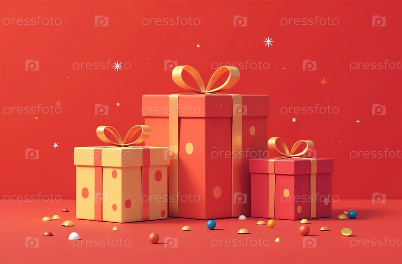 Красная подарочная коробка с лентой на красном фоне. Сгенерировано искусственным интеллектом