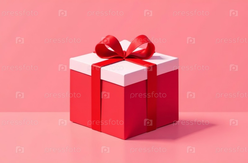 Красная подарочная коробка с лентой на розовом фоне. Сгенерировано ИИ