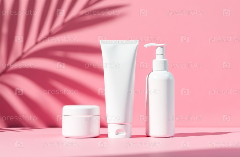 Макет белой тюбиковой бутылки косметической баночки на розовом фоне. Генеративный ИИ