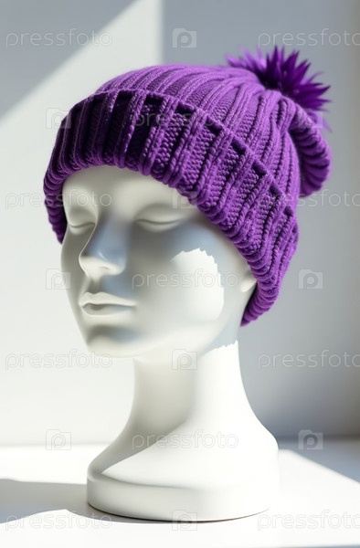 Унисекс сиреневая шляпа на манекене на белом фоне Mockup. AI Generative