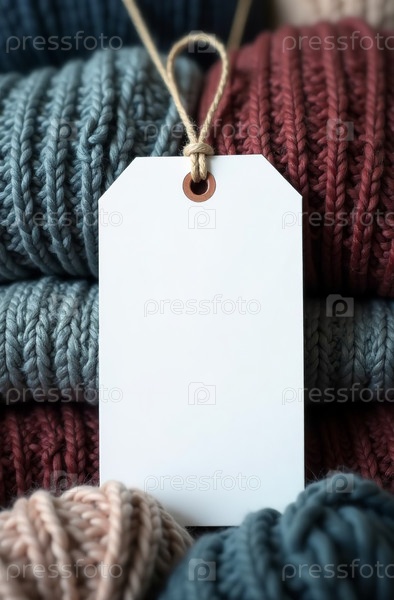 Картонная бирка, привязанная соломенной нитью к трикотажному полотну. Генеративный искусственный интеллект