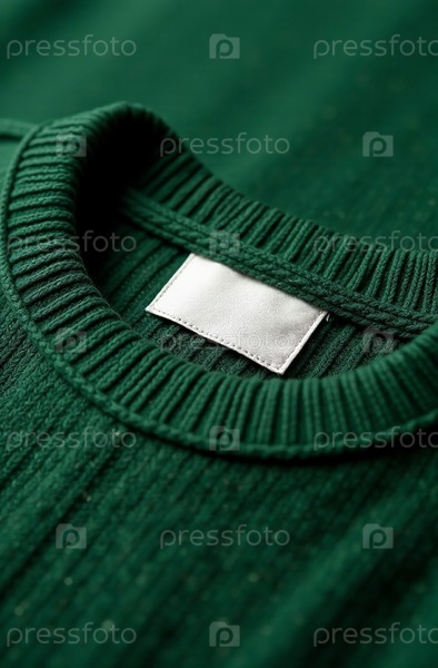 Бирка на шее для макета вязаного зеленого свитера. Генеративный искусственный интеллект