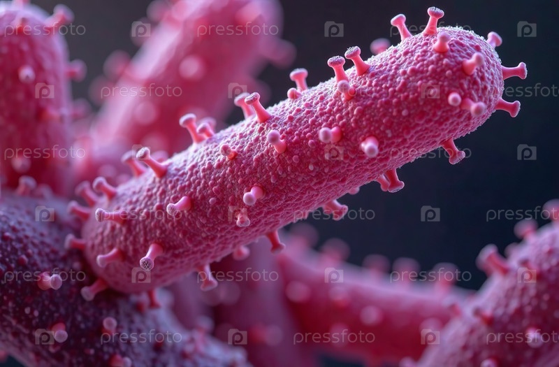 Вирусы и микробы, движущиеся на черном фоне, абстрактная иллюстрация. Генеративный искусственный интеллект