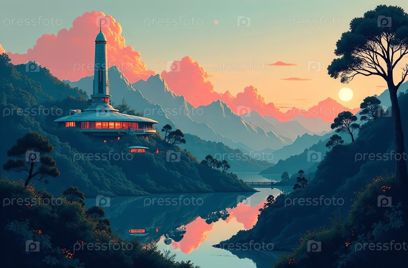 Футуризм, научная фантастика, кибергород, панорама, виртуальная реальность. Генеративный ИИ