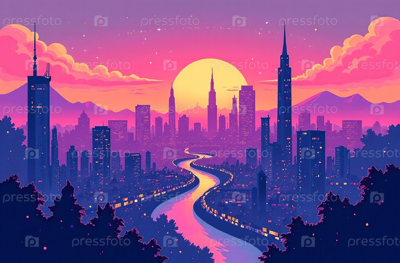 Футуризм, научная фантастика, кибергород, панорама, виртуальная реальность. Генеративный ИИ