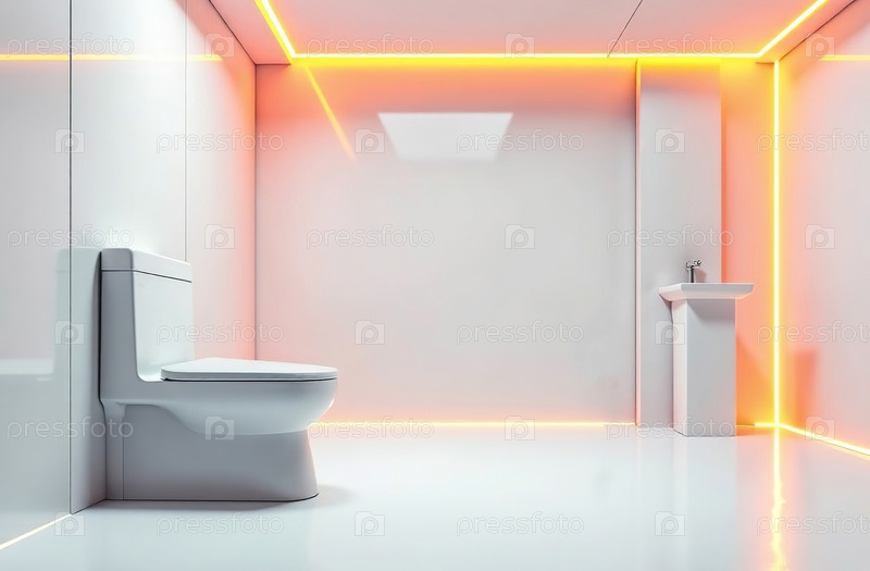 Ретрофутуристский интерьер здания, туалет свободного пространства. Генеративный искусственный интеллект