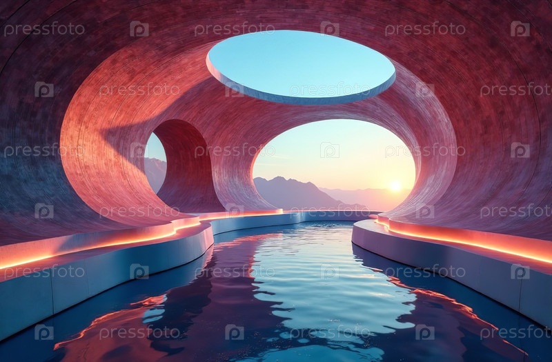 Ретрофутуризм интерьер здания, свободное пространство коридора. Генеративный ИИ