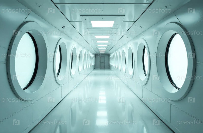 Ретрофутуризм интерьер здания, свободное пространство коридора. Генеративный ИИ