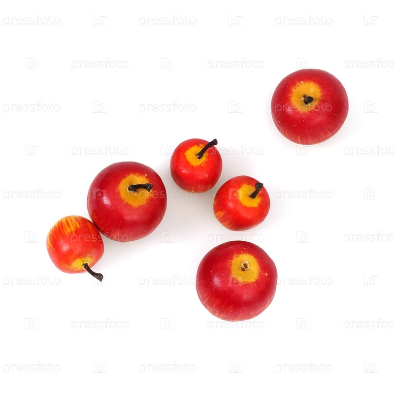 Игрушки в виде яблок на Рождество, изолированные на белом фоне