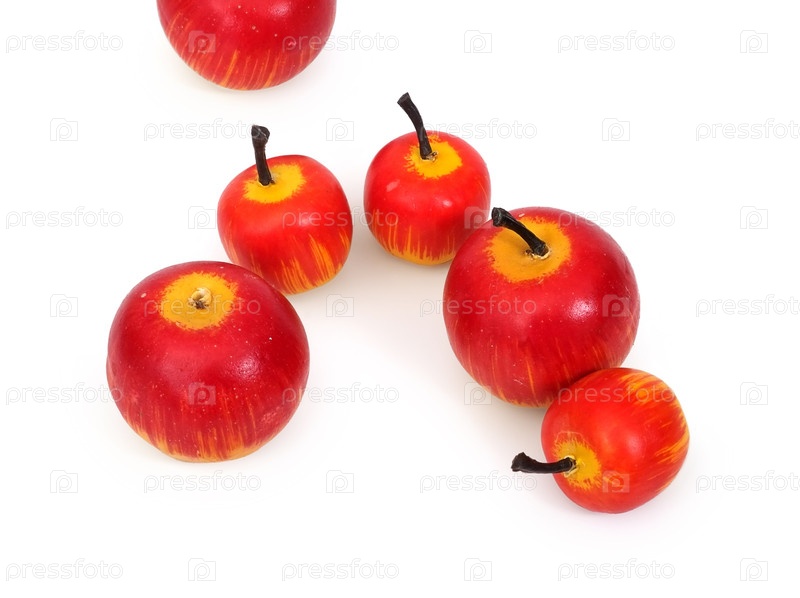 Игрушки в виде яблок на Рождество, изолированные на белом фоне
