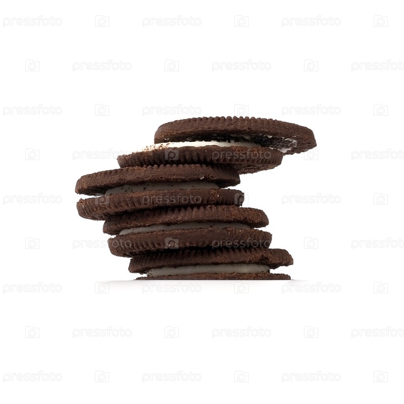 Шоколадное печенье с белой кремовой начинкой, изолированное на белом фоне